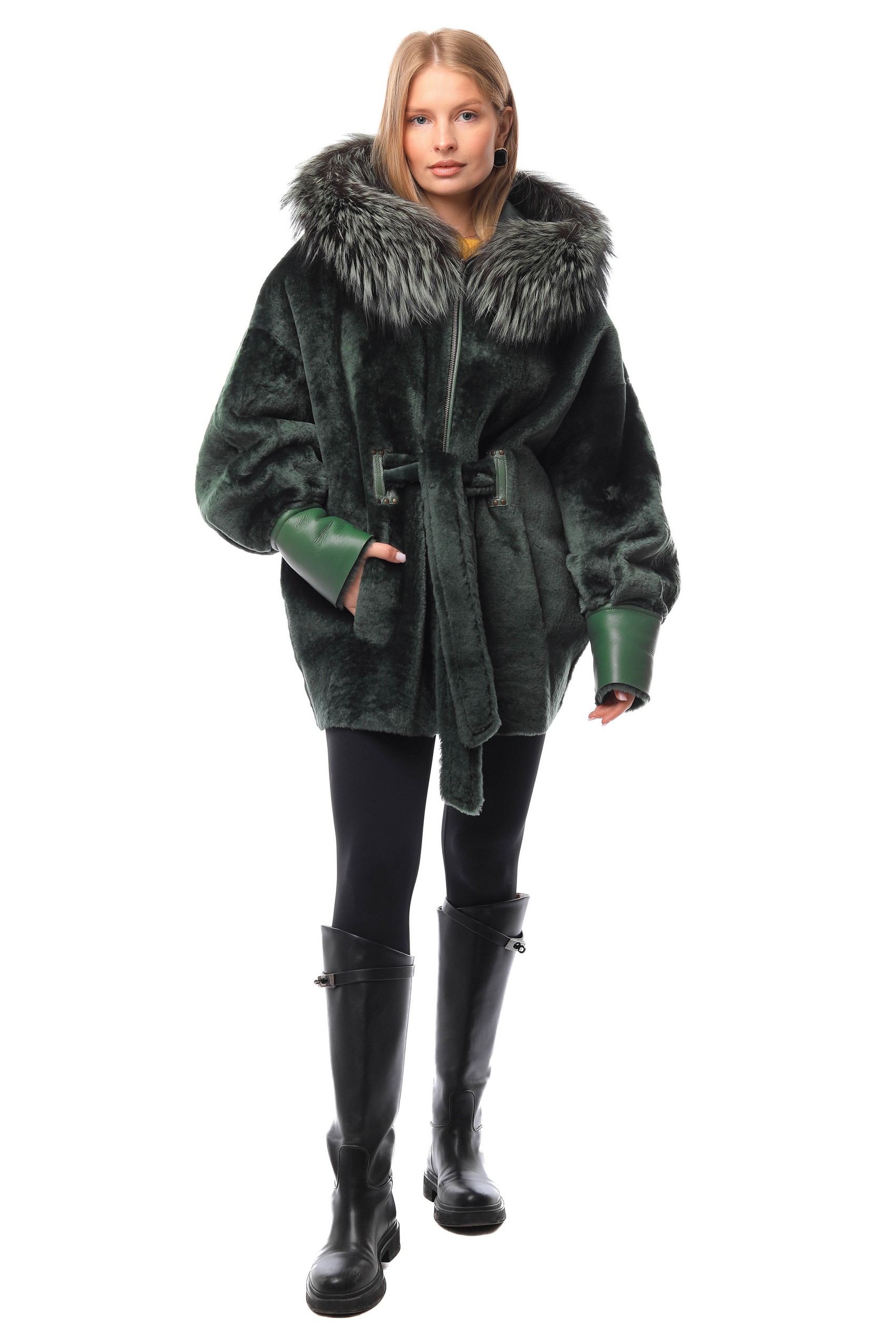 Куртка из натуральной овчины Жен PROMO STYL P-1531 Натуральный мех - овчина, отделка - лиса крашенная